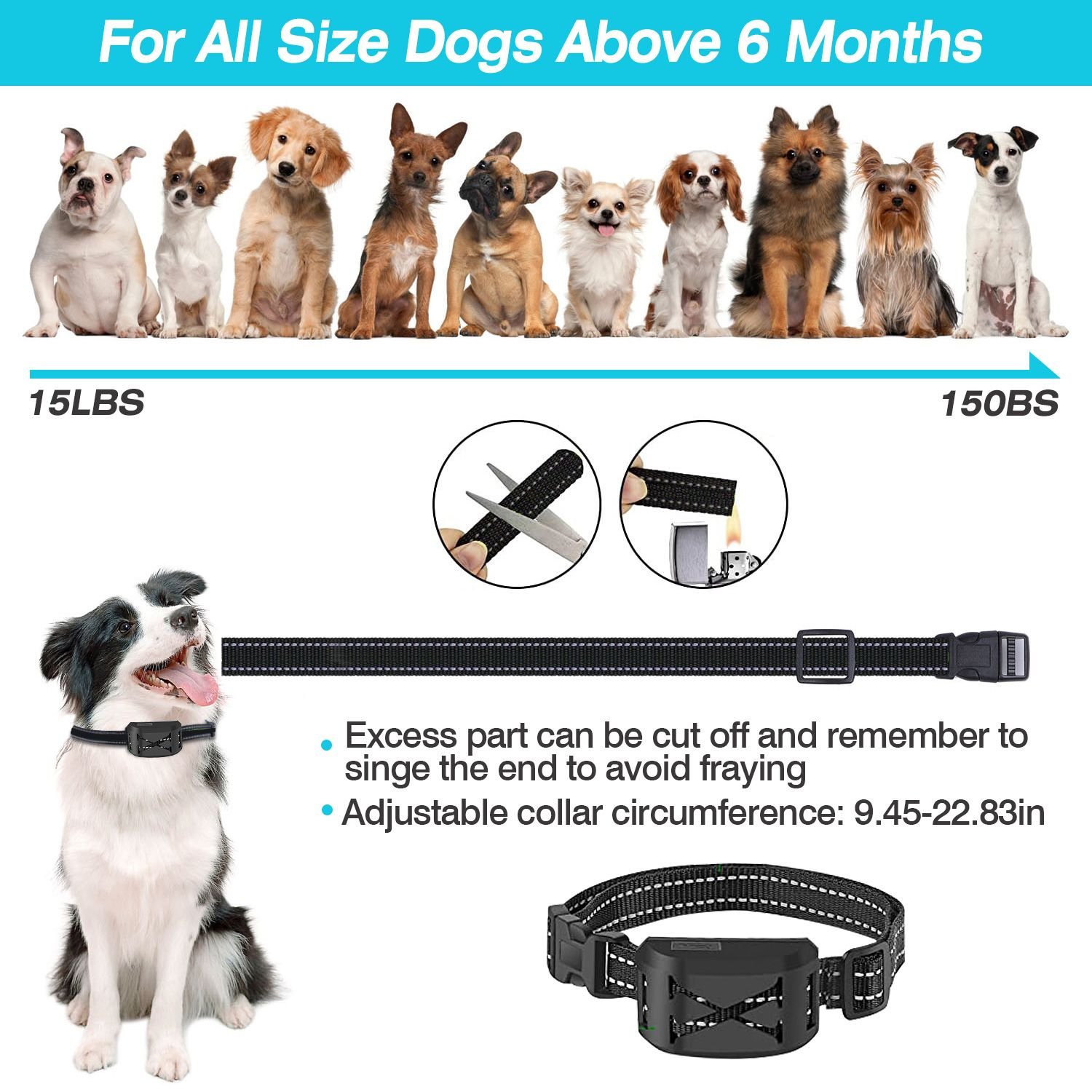 *Adjustable & Reflective Collar*:The collar can be adjusted from 9.45in to 22.83in to fit most sizes of 6-month+year old dogs between 15-120LBS. Reflected strips on the collar make people see your dogs clearly even at night which effectively keep your dog safe.