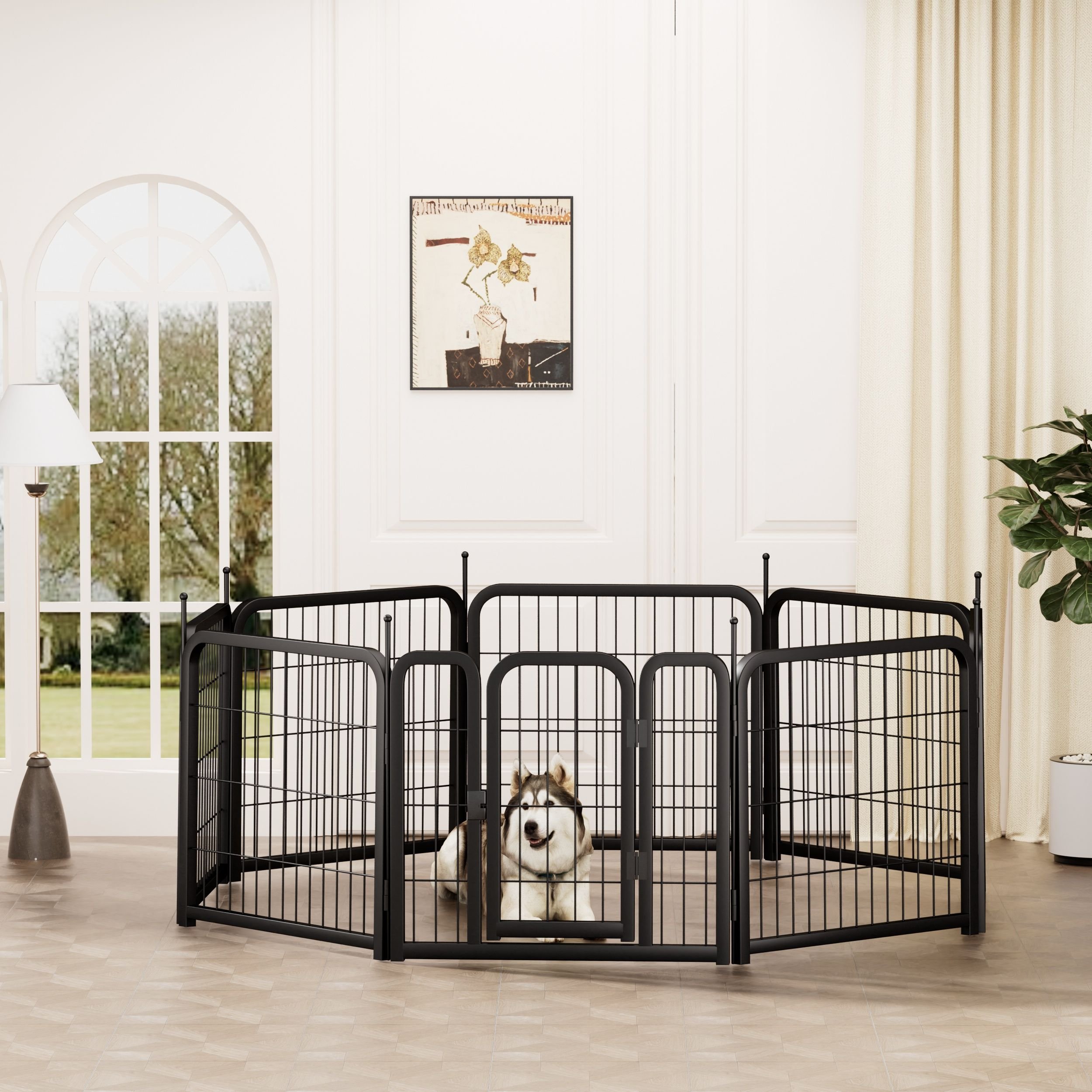No tools required: all you need to do is unfold this dog play pen and connect them via metal bars, and within seconds you will have a dog fence with no extra effort, while when you don't apply them you can fold them up for easy storage or travel without taking up space!