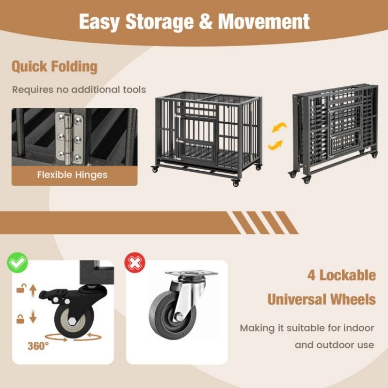 -4 wheels can be locked, ensuring the dog crate securely stay in place