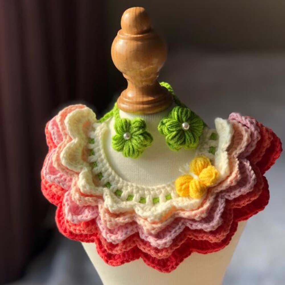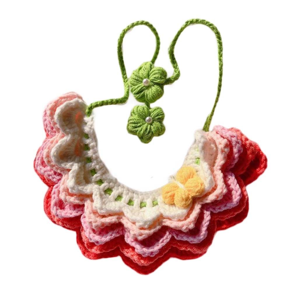 Handmade Crochet Pet Collar Cute Knitted Rainbow Necklace Collar Cat Dog Pink Gradient Scarf Bib