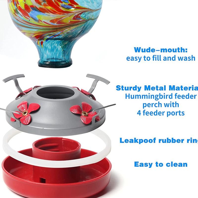 2X LEAKPROOF & RUSTPROOF - No more frustration by the incessant dripping from other bird feeders! The built-in sealing gasket of ours offer the extra protection against the leak. Owing to the advanced acid passivation technology; the metal base of this humming birds feeders for outside has 2X resistance to rust and corrosion than others. The ring perch around the base offers the seats for your feathered friends to free them from flapping wings while they enjoy a sip of nectar.