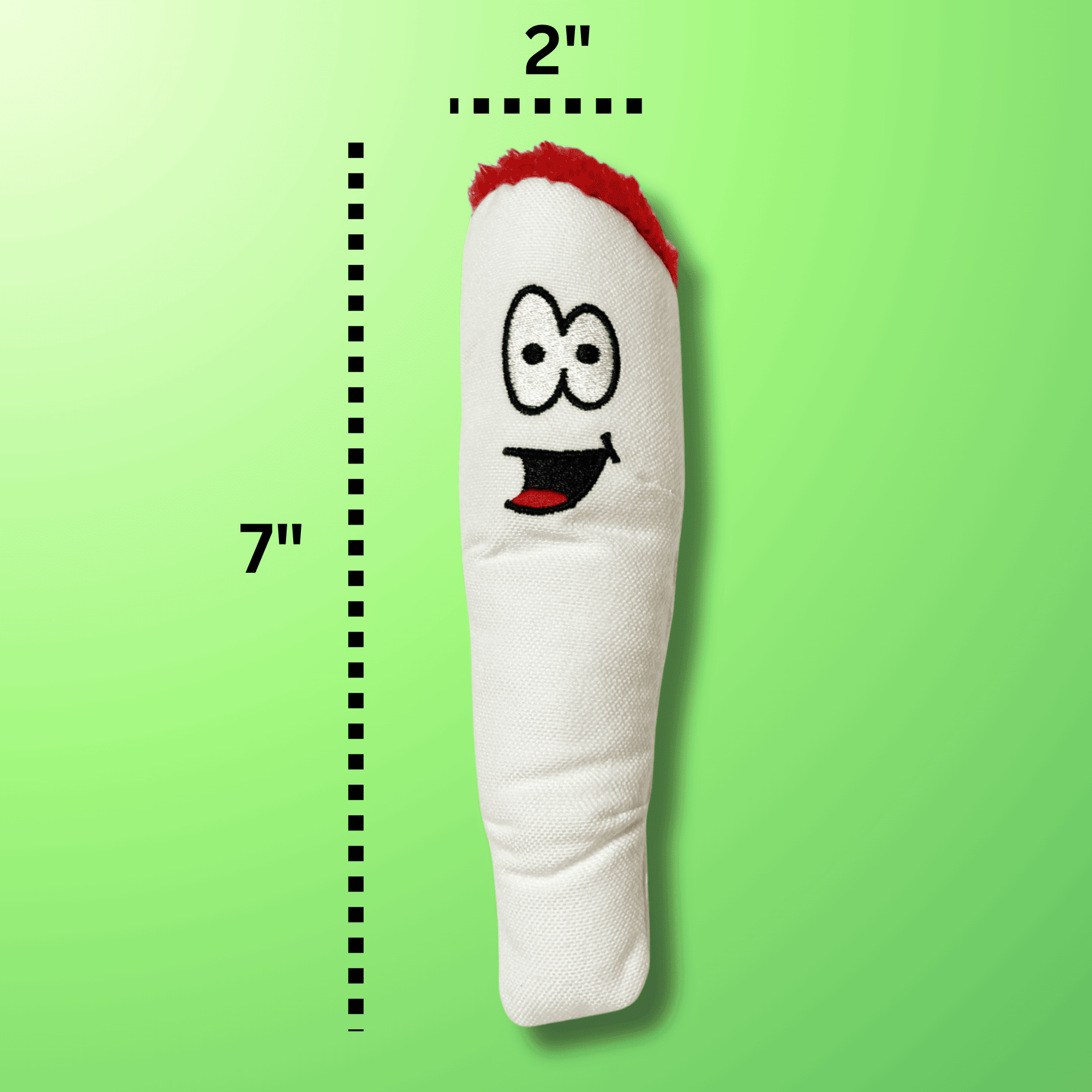 Meet Jay! He is approximately 7" high, canvas and has a built-in squeaker. Your pup will love joining you for 4:20! Jay is a happy joint ready for light play or better yet as a photo prop! Jay's back is blank and looks just like a big; lit joint! Great for funny Instagram pics and video!