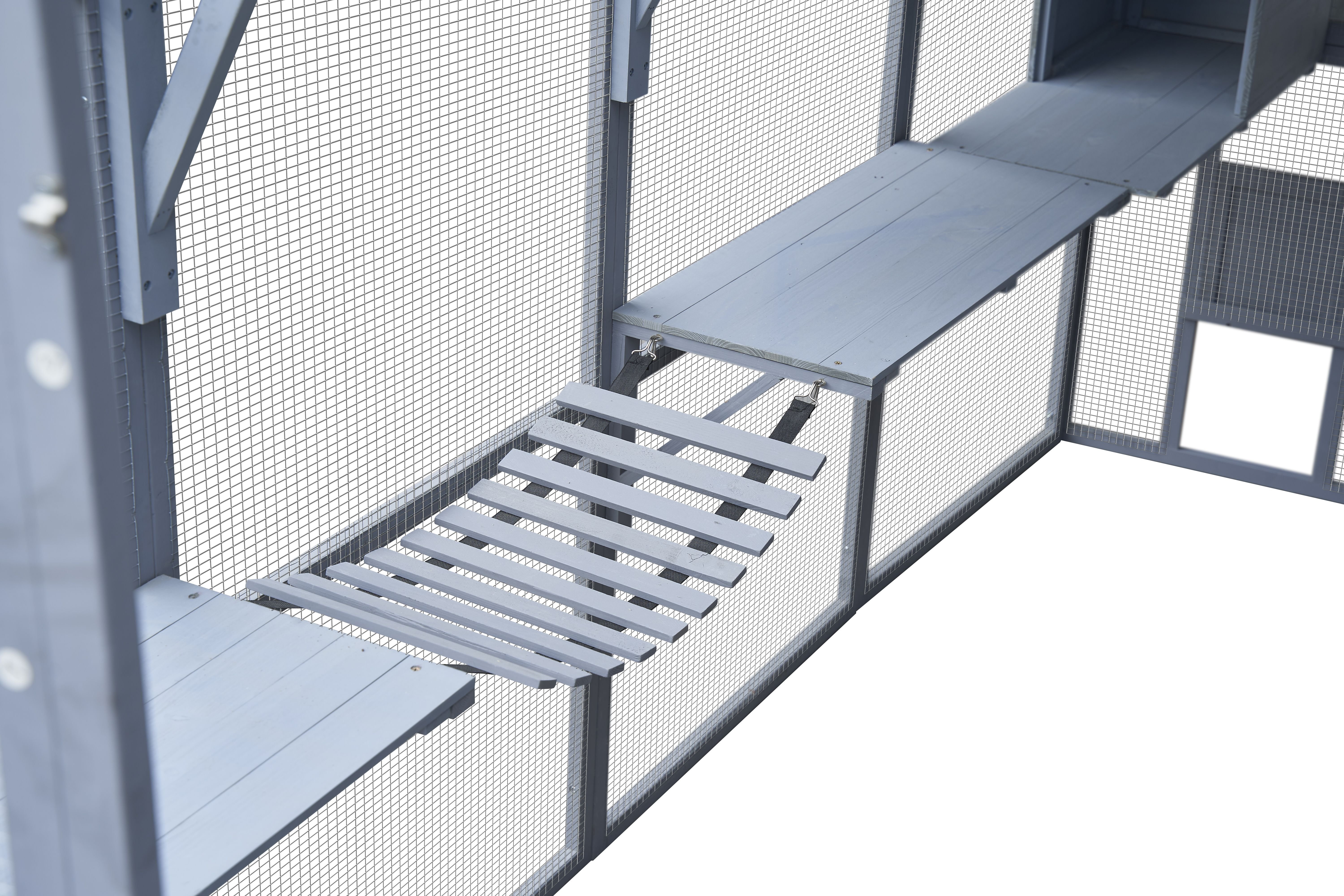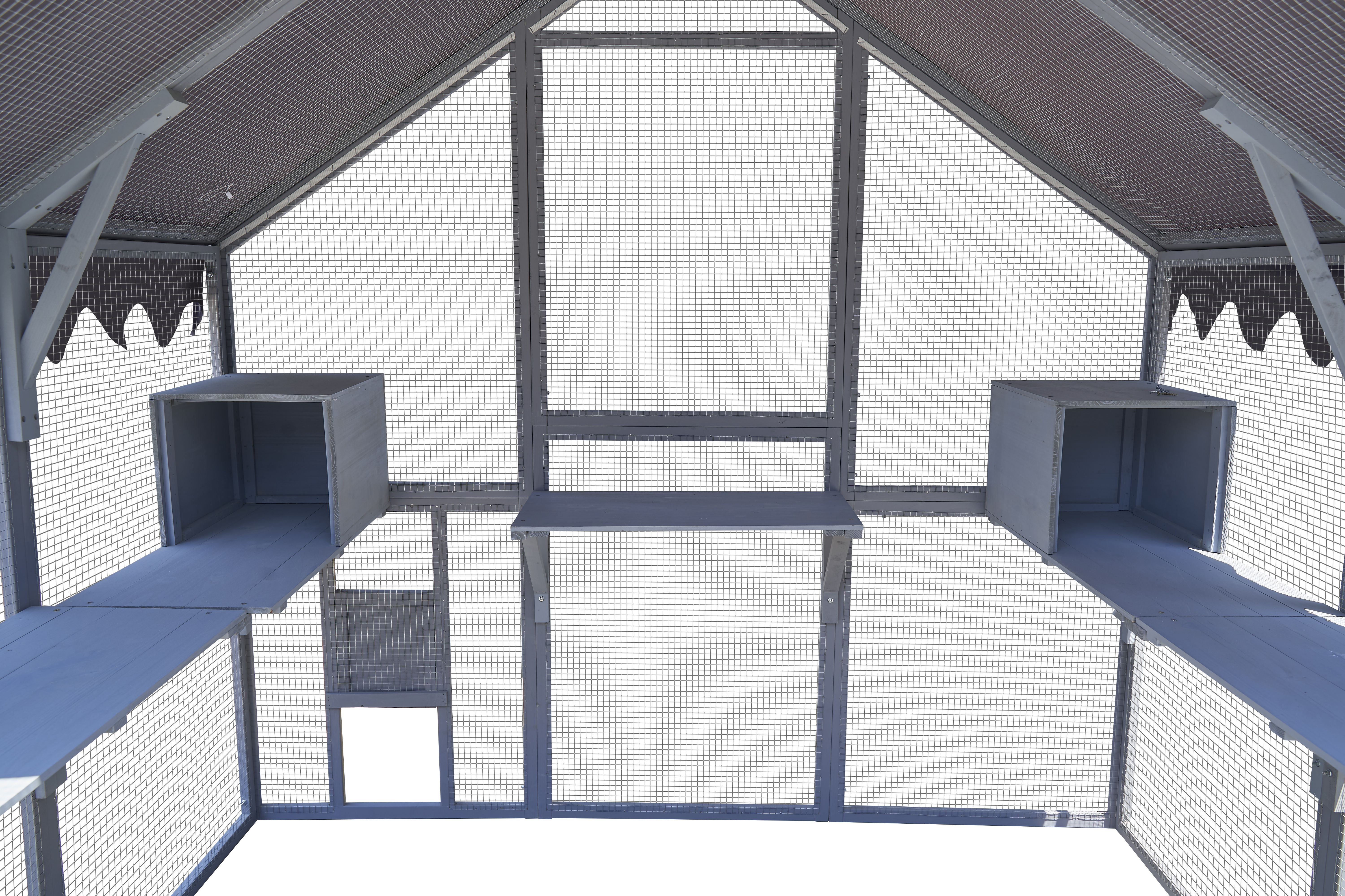Outdoor Cat House Cat Enclosures 110" Large Kitten Playpen with Platforms,Upgrade Waterproof Cover-grey