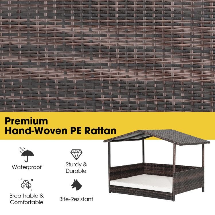 Home > Outdoor Wicker Dog House with Weatherproof Roof