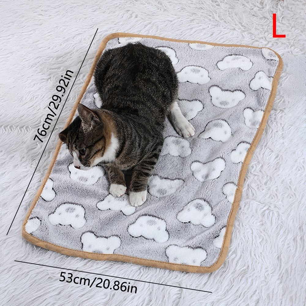 Warming Pet Pad Cartoon Paw Print Cat Warm Bed Plush Sleeping Pad For Small Puppy Dogs Kitten