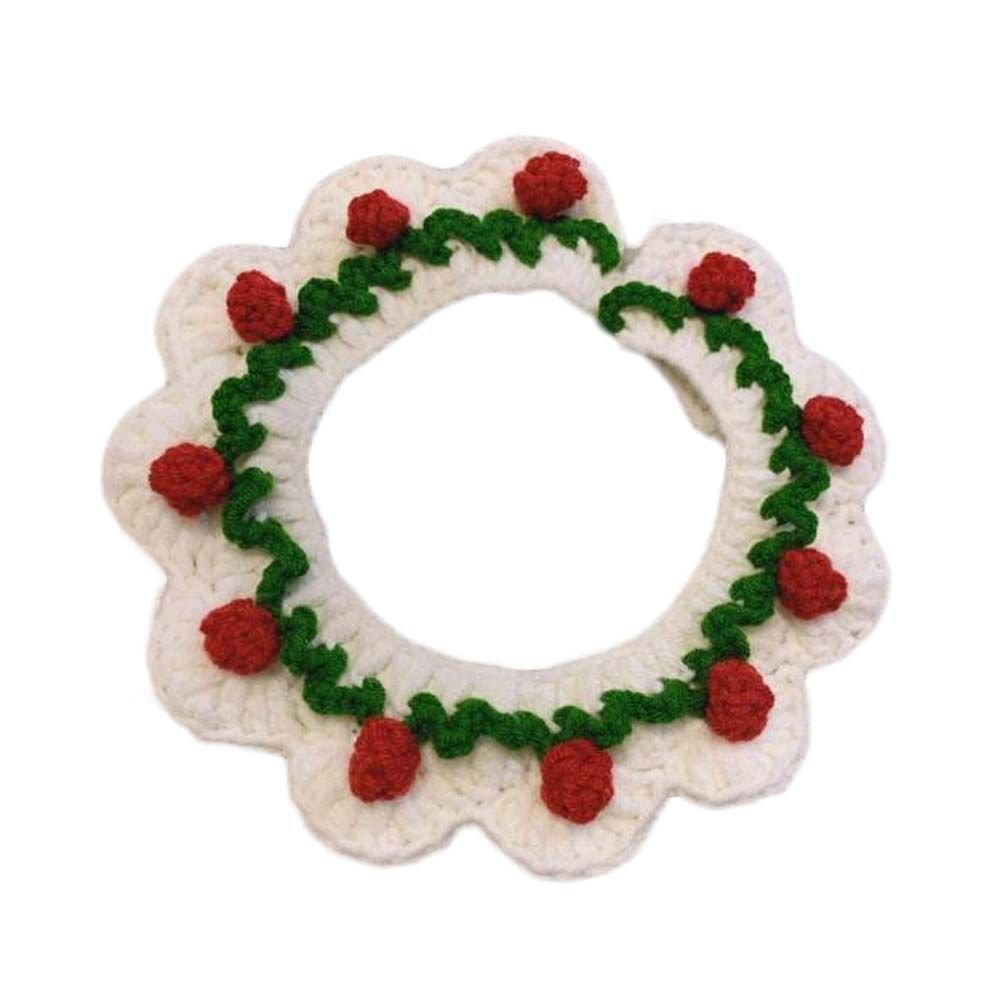 White Strawberry Pet Knitted Collar Handmade Crochet Necktie Collar Cat Dog Necklace Pet Cute Scarf Bib