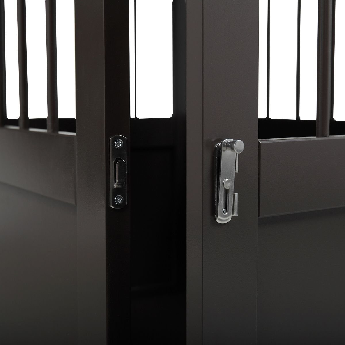 [Double Lock Door]: The door is secured with double locks. One with a magnetic lock allows your pet to open from the inside. The other with a metal latch, only open-able from outside.