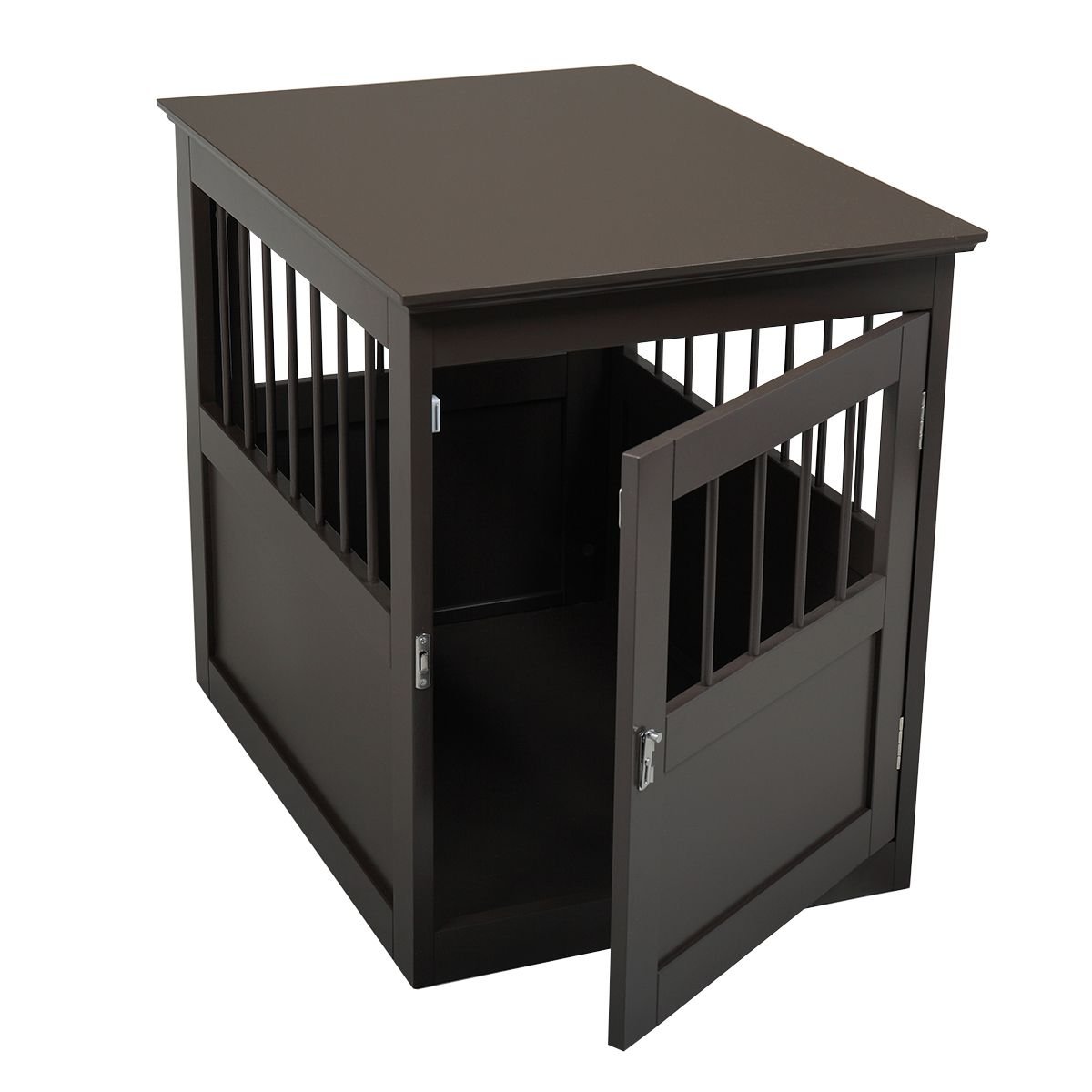 Specifications:Color: BrownMaterial: MDF (P2)Product Dimension: 27.56" x 20.08" x 24.41" (L * W * H)Usage: Pet crate & End tableNet weight: 33.4 LBS